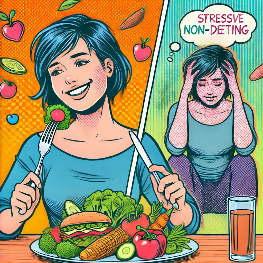 ● 다이어트가 정말 건강에 좋은 걸까?다이어트는 흔히 건강을 위한 필수 과정으로 여겨지지만, 잘못된 방식의 다이어트는 오히려 신체적, 정신적 건강을 해칠 수 있습니다. 지속적인 칼로리 제한과 체중 감량 목표는 몸의 자연스러운 신호를 무시하게 만들고, 오히려 폭식과 요요 현상을 유발할 수 있습니다.  ✅ 대표적인 다이어트의 부작용기초대사량 저하: 장기간 칼로리를 제한하면 몸이 에너지를 아끼려 하면서 기초대사량이 감소합니다.요요 현상: 다이어트를 끝낸 후 원래 식습관으로 돌아가면 체중이 쉽게 증가합니다.정신적 스트레스: 음식에 대한 죄책감, 체중에 대한 강박이 생길 수 있습니다.영양 불균형: 특정 식품을 제한하는 다이어트는 필수 영양소 부족을 초래할 수 있습니다. ● 탈다이어트란 무엇인가?탈다이어트(Non-..